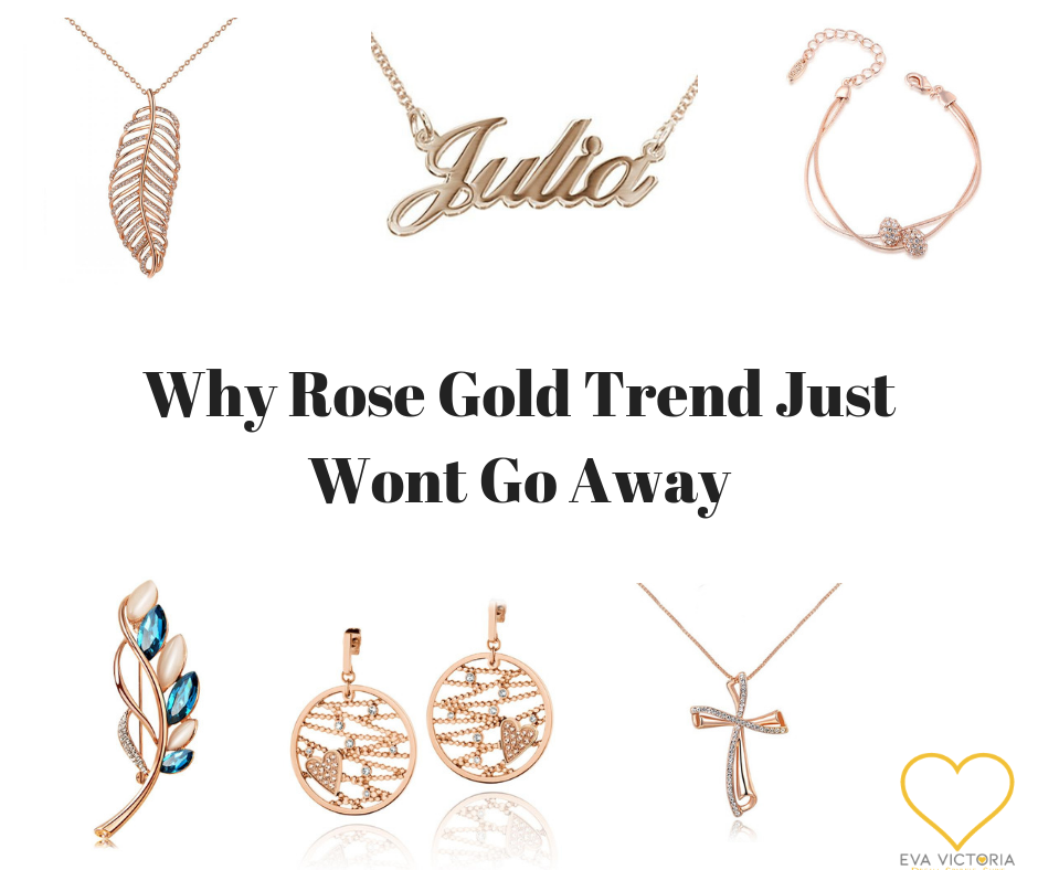 According to a reputable source, it actually all started with jewellery back in 2012. And this is exactly why it won't go away very fast. It actually has been with us for 6 years now. While rose gold back in 2012 was a choice of jewellery for celebrities and influencers, it is widely available now in all shapes and sizes.