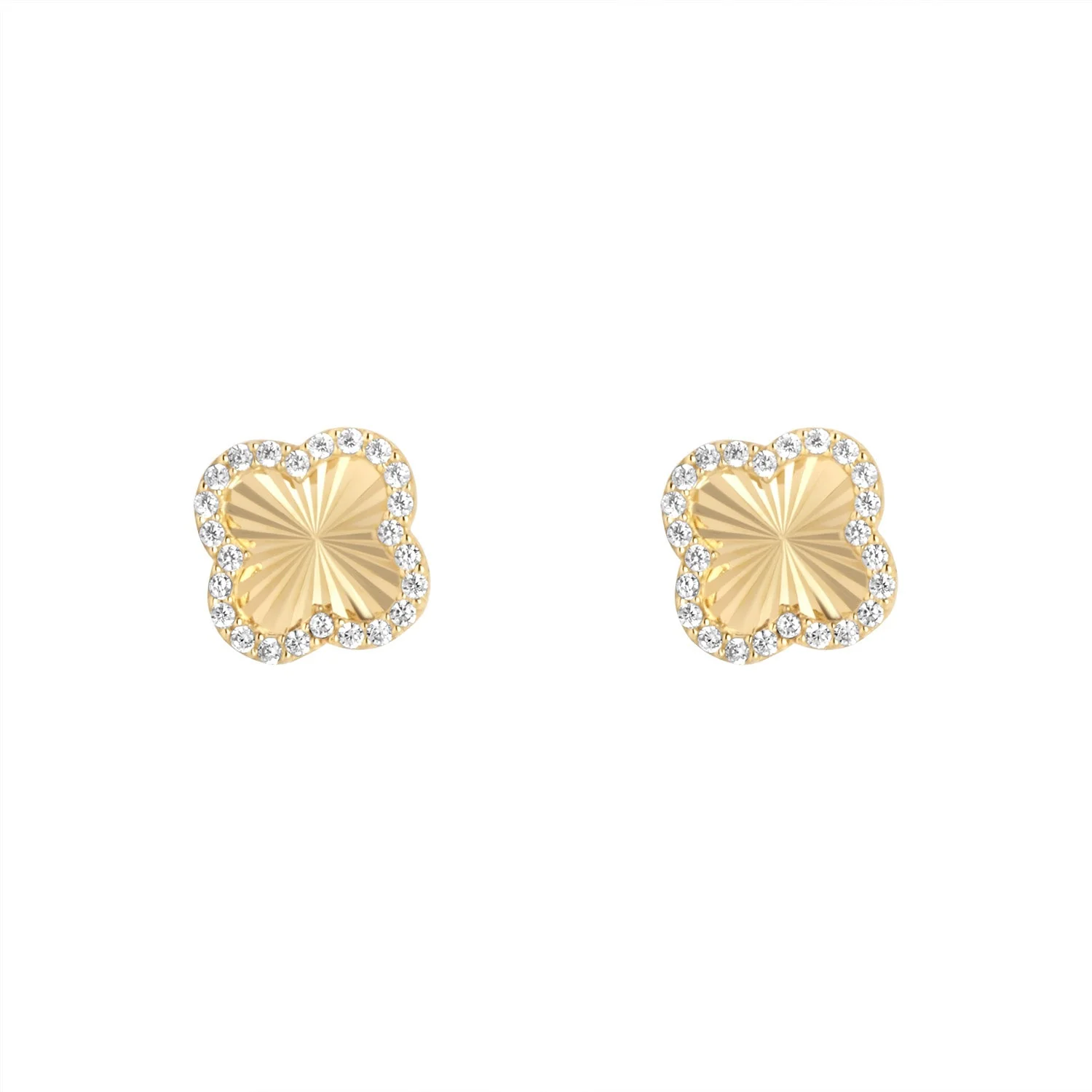9ct Yellow Gold 12mm CZ Clover Stud Earrings