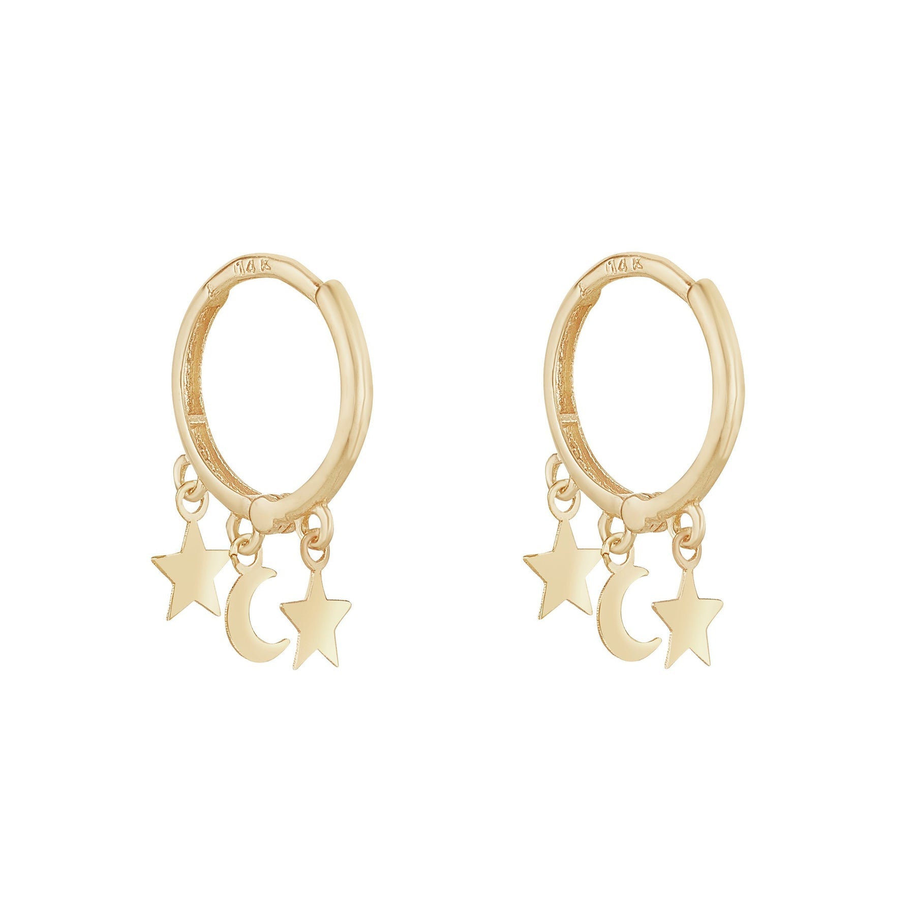 9ct Yellow Gold Moon & Stars Charms Hoop Earring