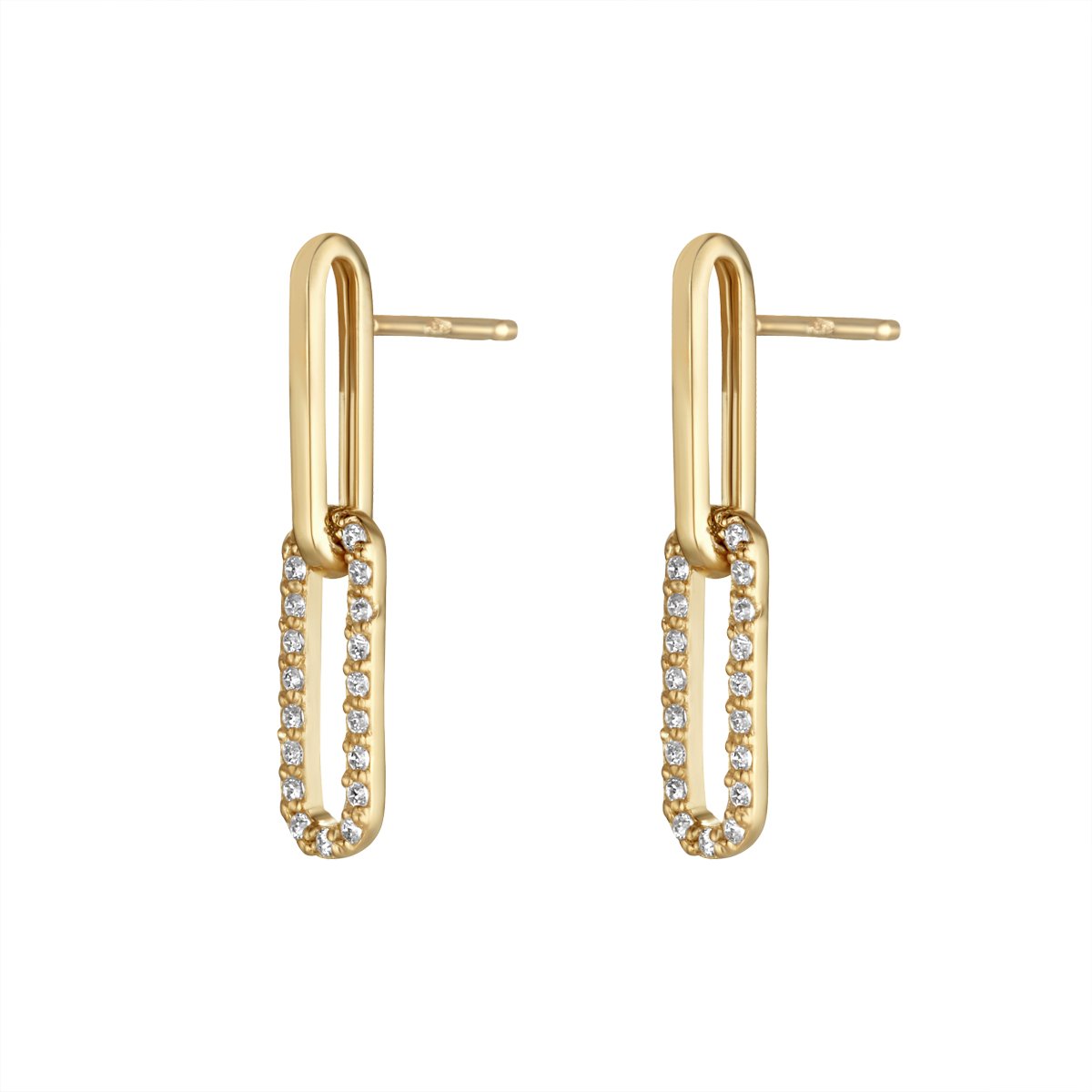 9ct Yellow Gold CZ Oval Chain Link Drop Earring