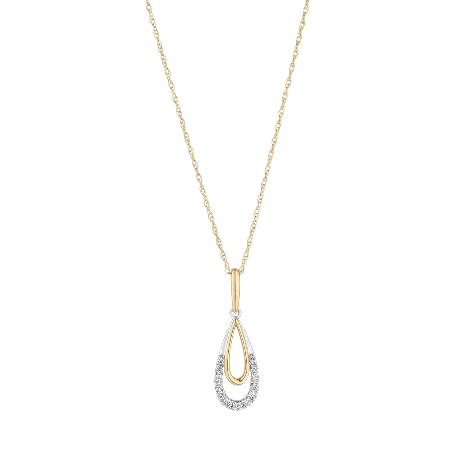 9ct Gold Diamond 0.12ct Elegant Two Tone Teardrop Pendant