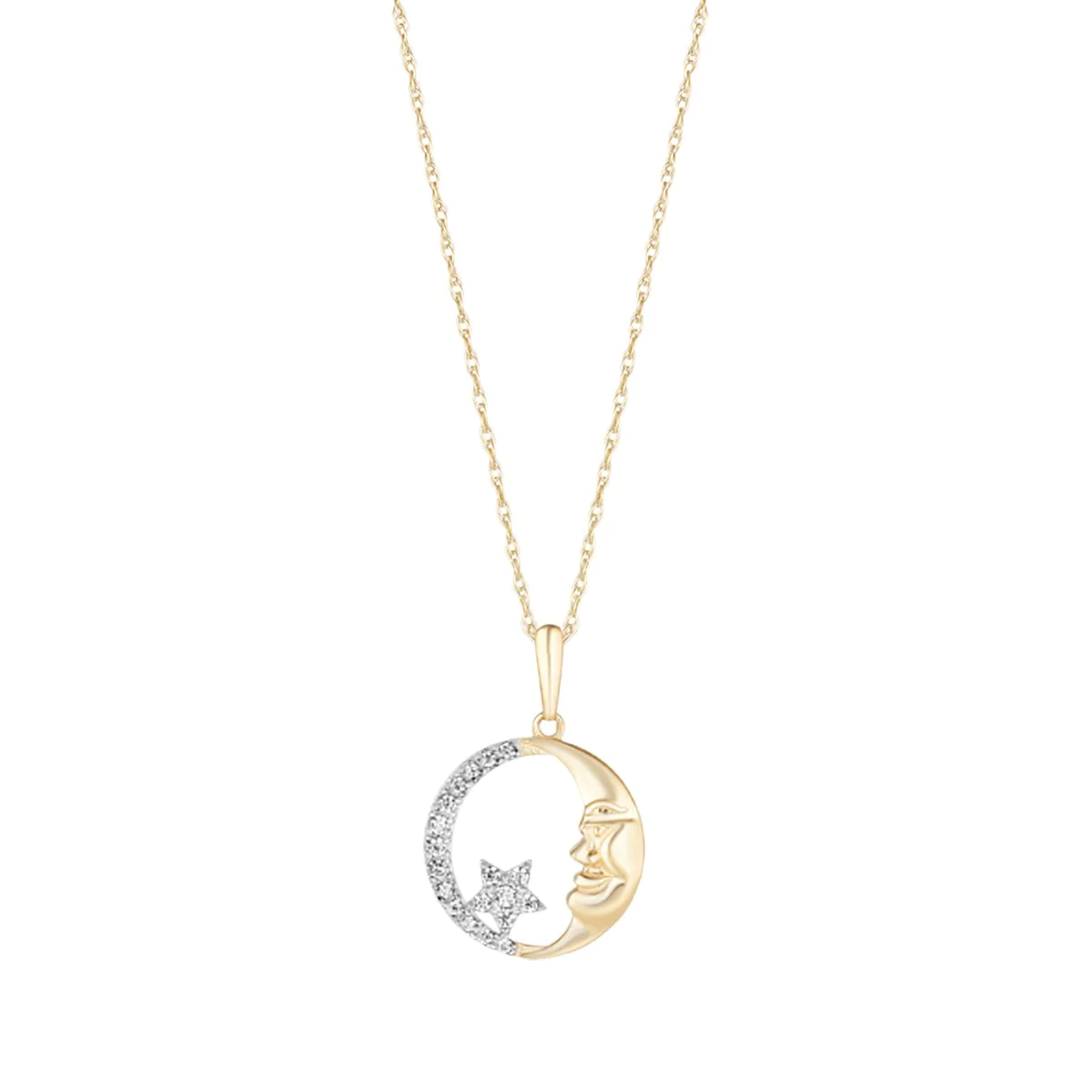 9ct Yellow Gold 0,11ct Diamond Moon Pendant