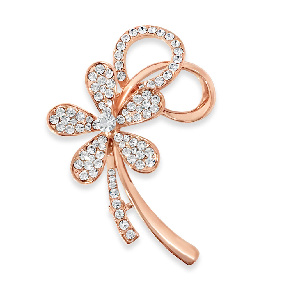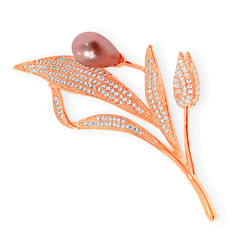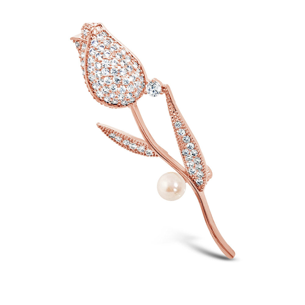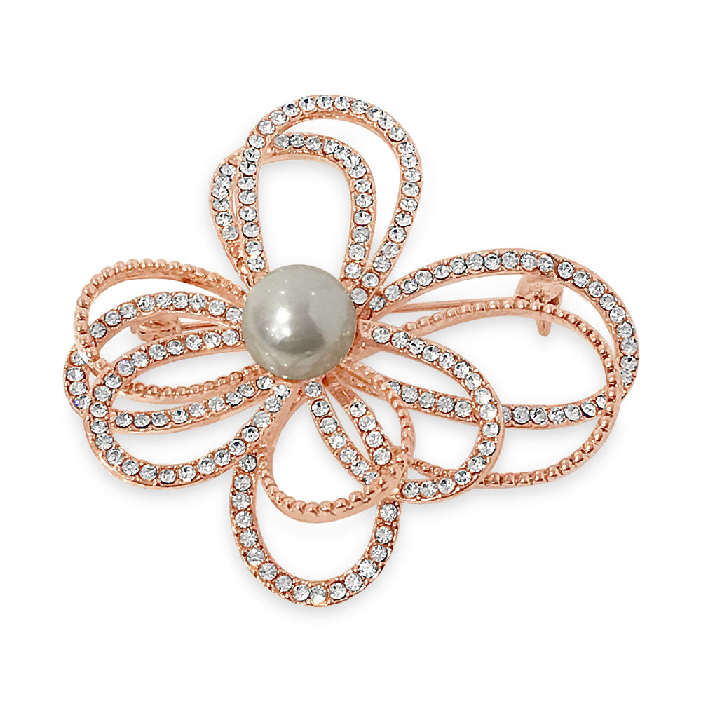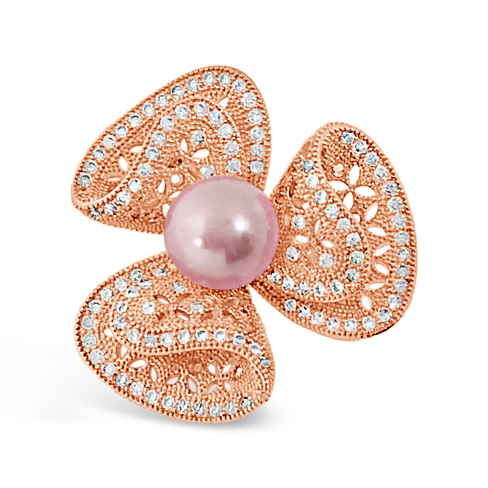 Pansy Pink Pearl Floral Diamante Rose Gold Brooch