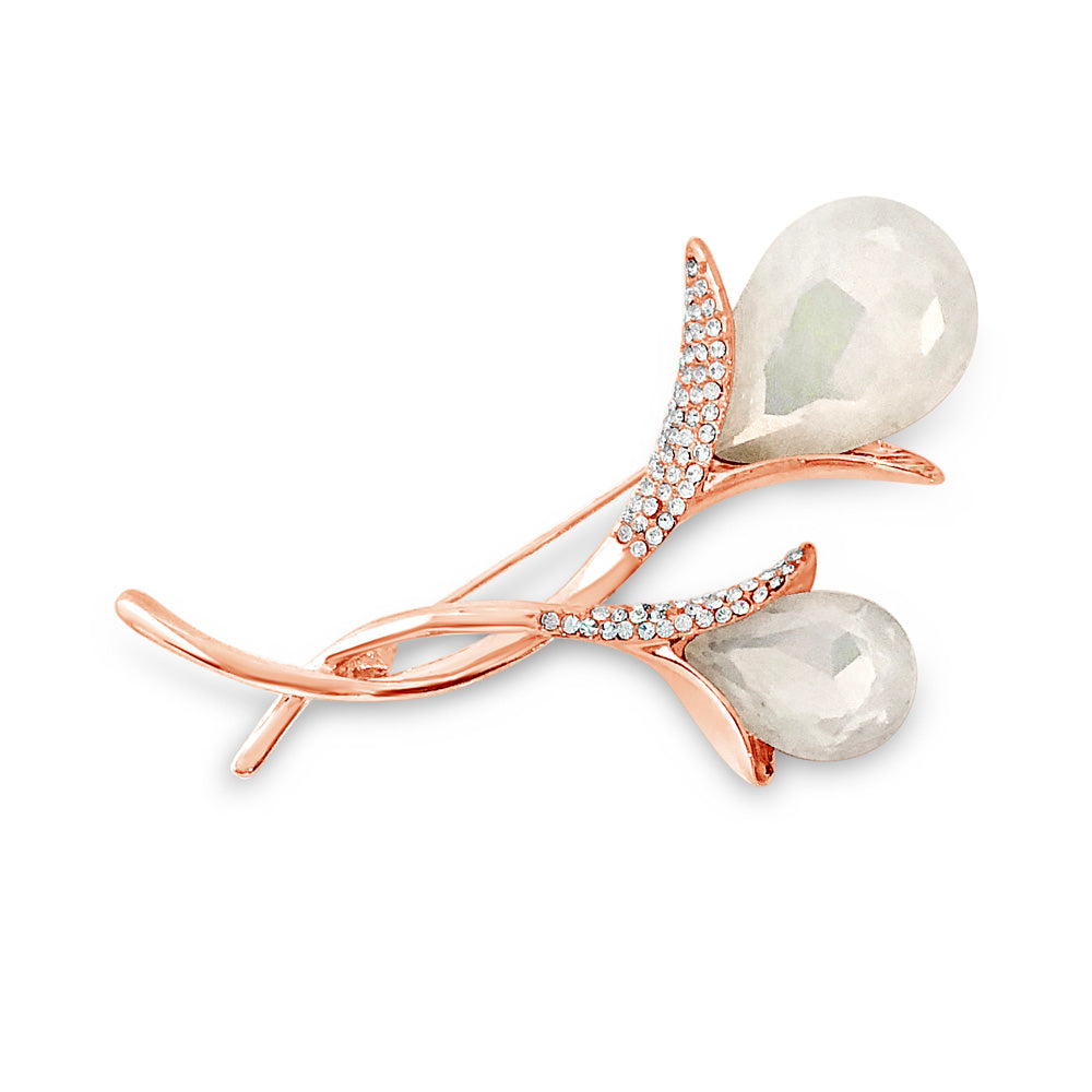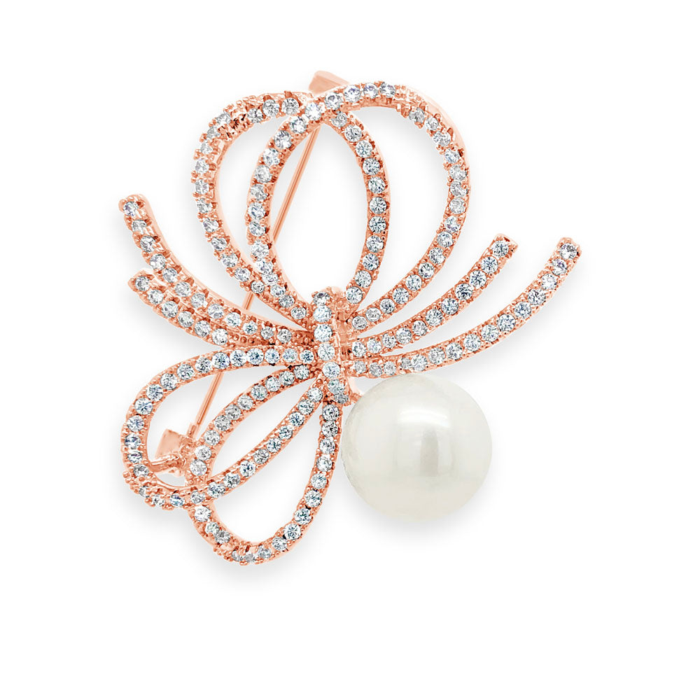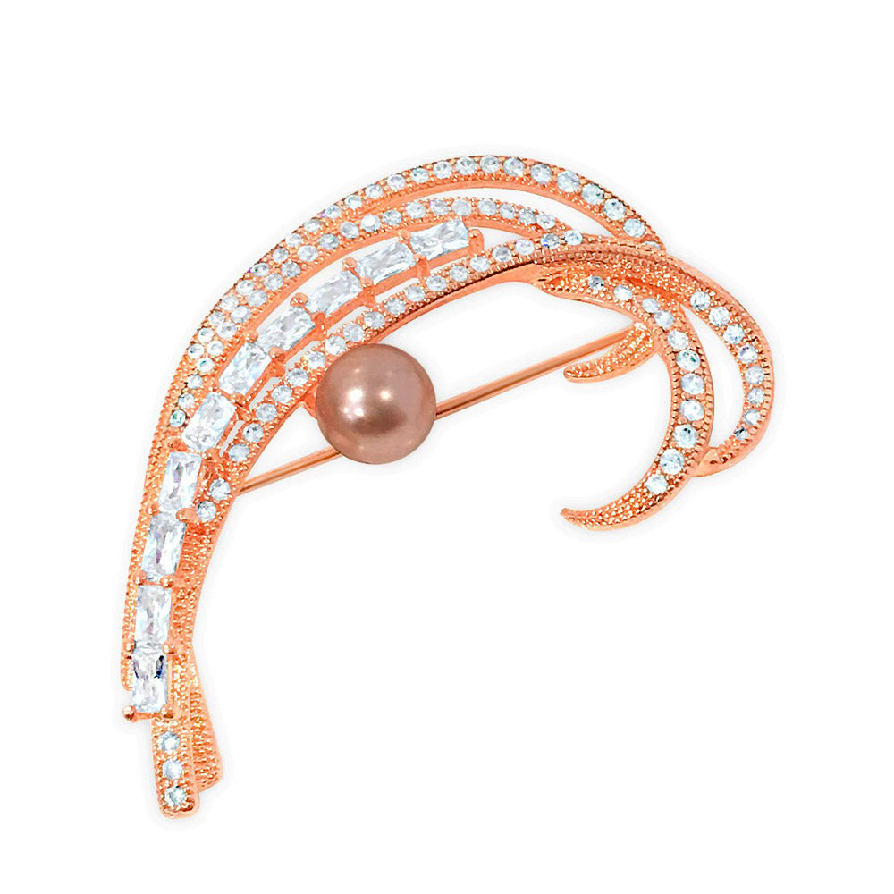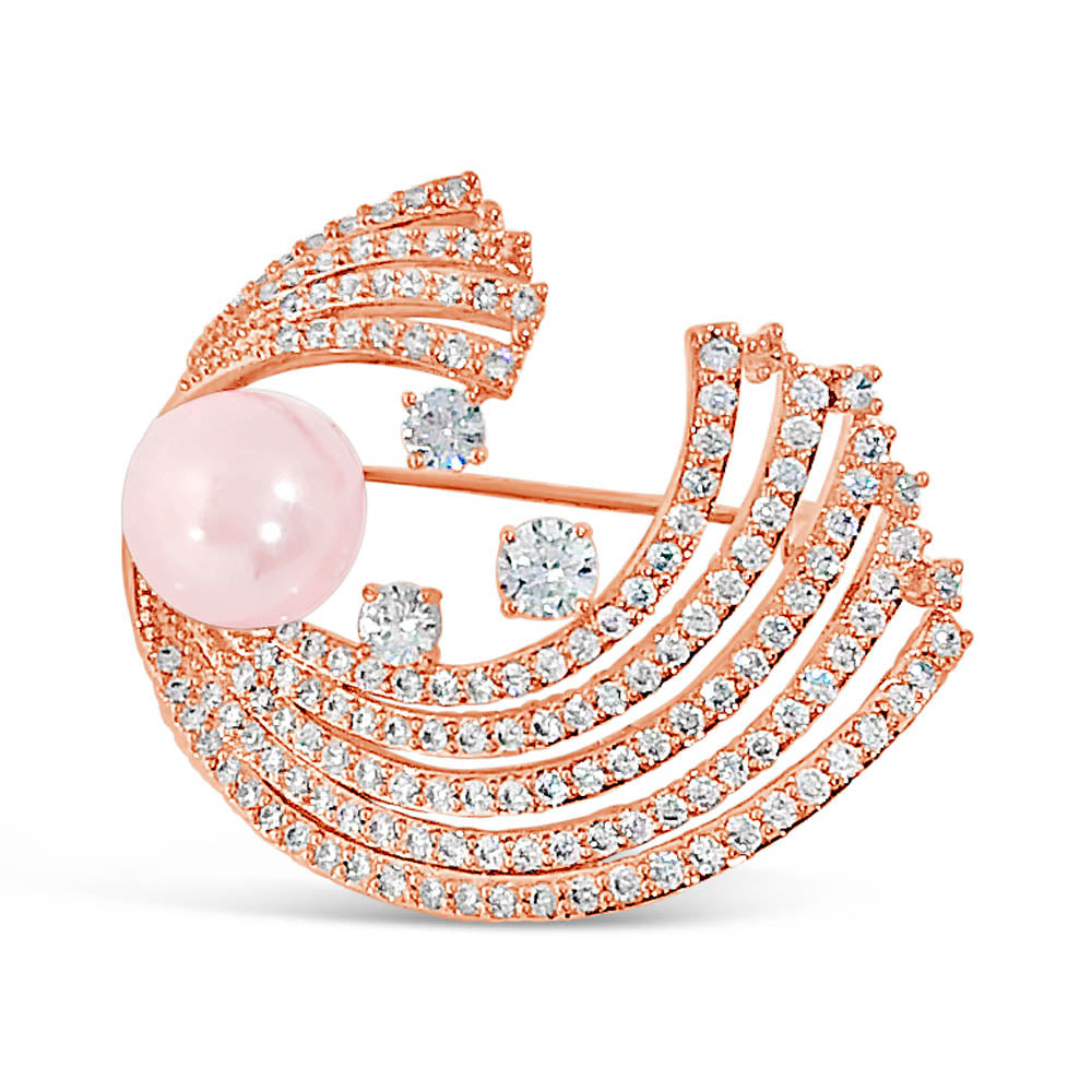 Wave Pink Pearl Diamante Rose Gold Brooch