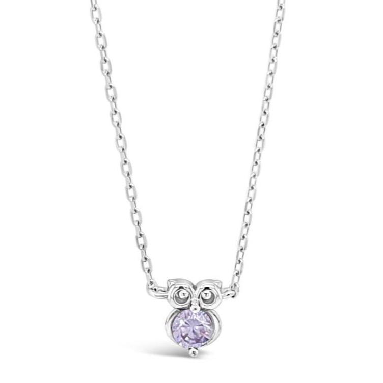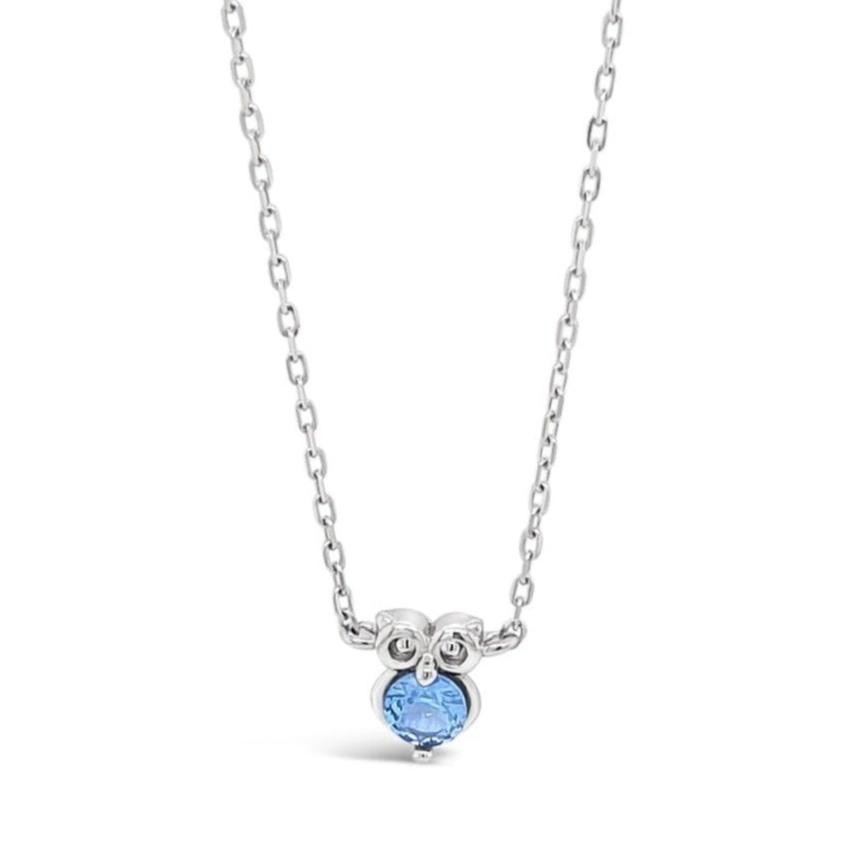 Description: This child-friendly sterling silver pendant features a charming little owl adorned with your choice of three gemstones: aquamarine, amethyst,...
