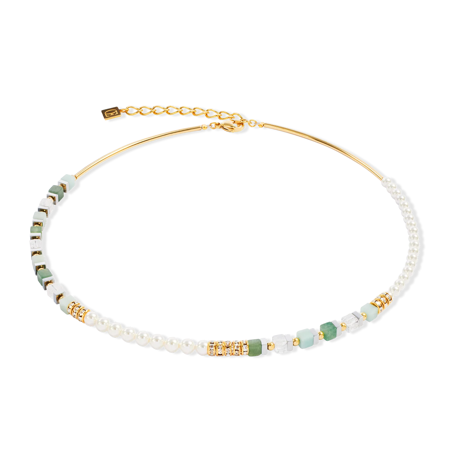 Coeur De Lion GeoCUBE® Precious Green Aventurine Gold Necklace
