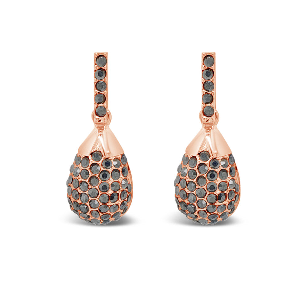 Description These stunning earrings make a gorgeous set with Teardrop Black Crystals Rose Gold Long Necklace & Clara Black Crystals Rose Gold...