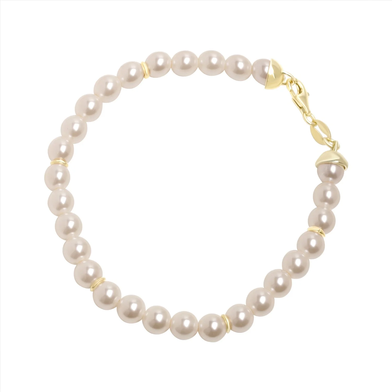 Description: Embrace timeless elegance with this classic 18ct gold sterling silver pearl bracelet. Crafted from lustrous freshwater pearls, it seamlessly...