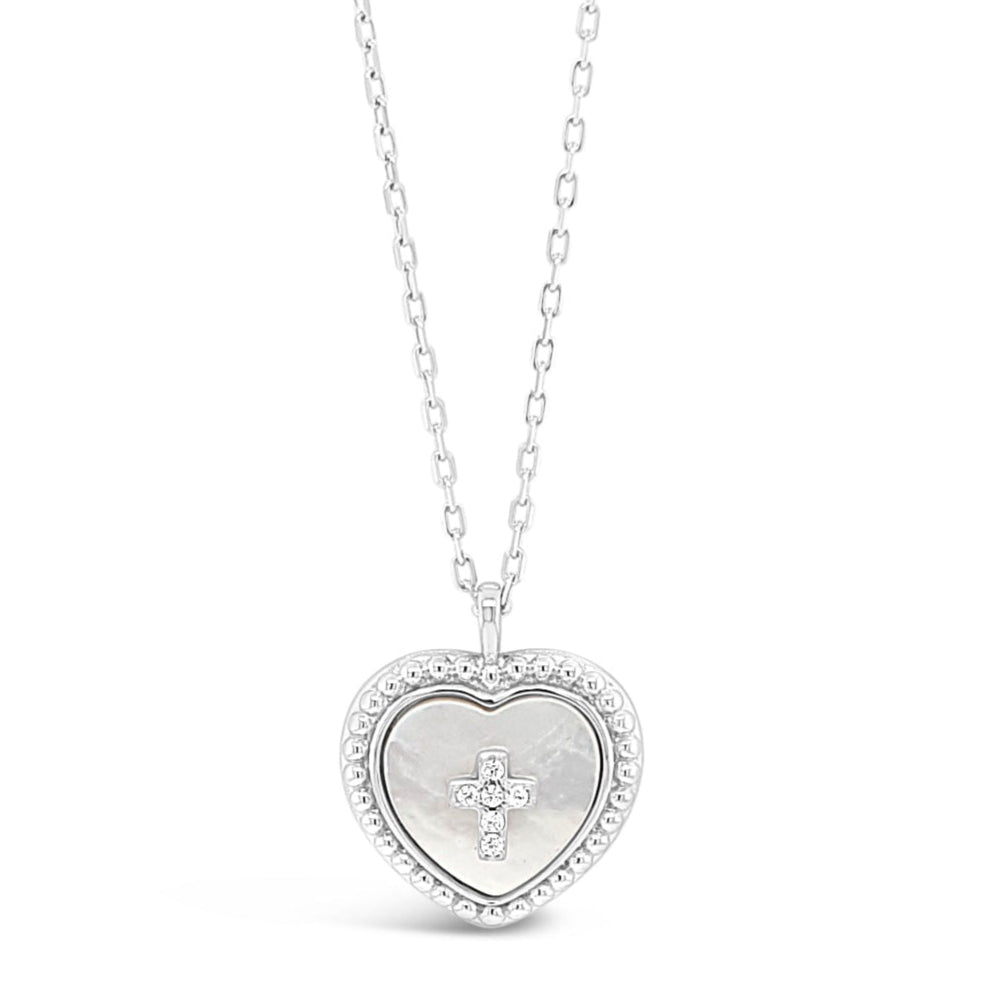 Mother of Pearl Heart & Cross Sterling Silver White Pearl Necklace