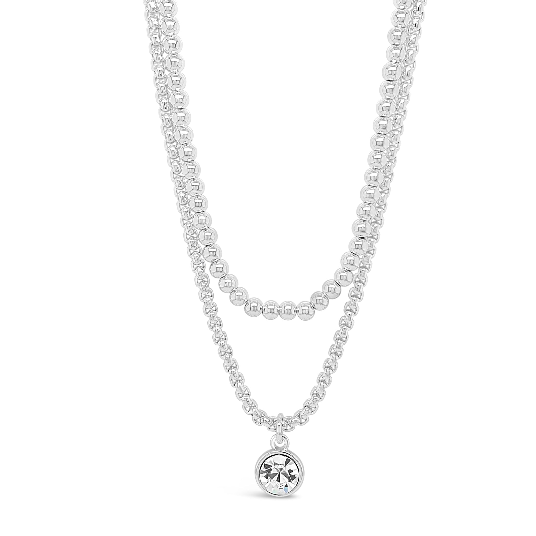 Absolute Jewellery Beaded & Belcher Chains Necklace with Solitaire Drop