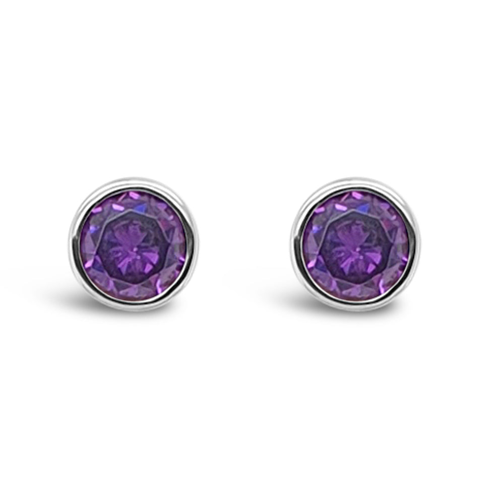 February Birthstone Sterling Silver Stud Earrings
