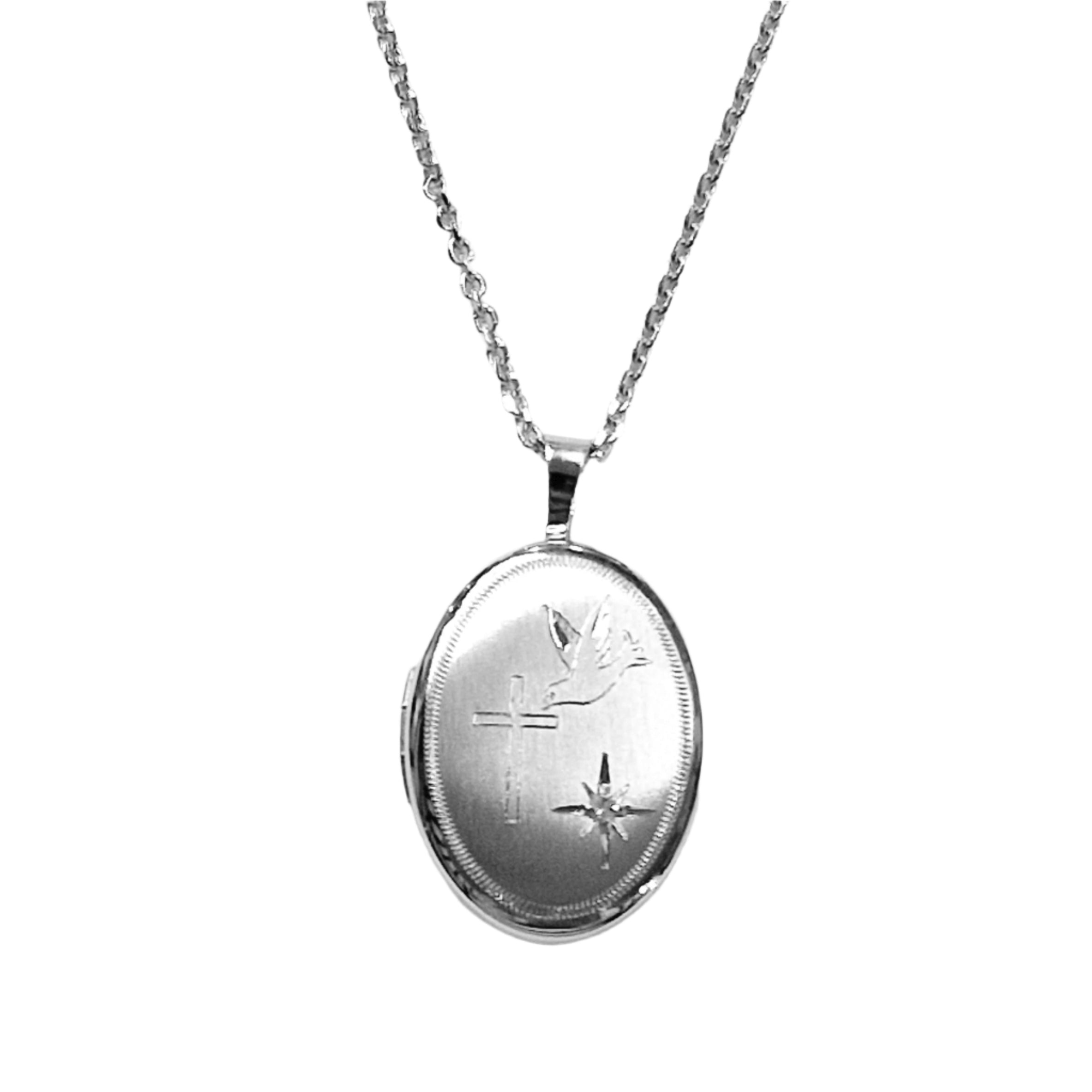 Sterling Silver Oval Photo Locket with Cross & Dove 18mm