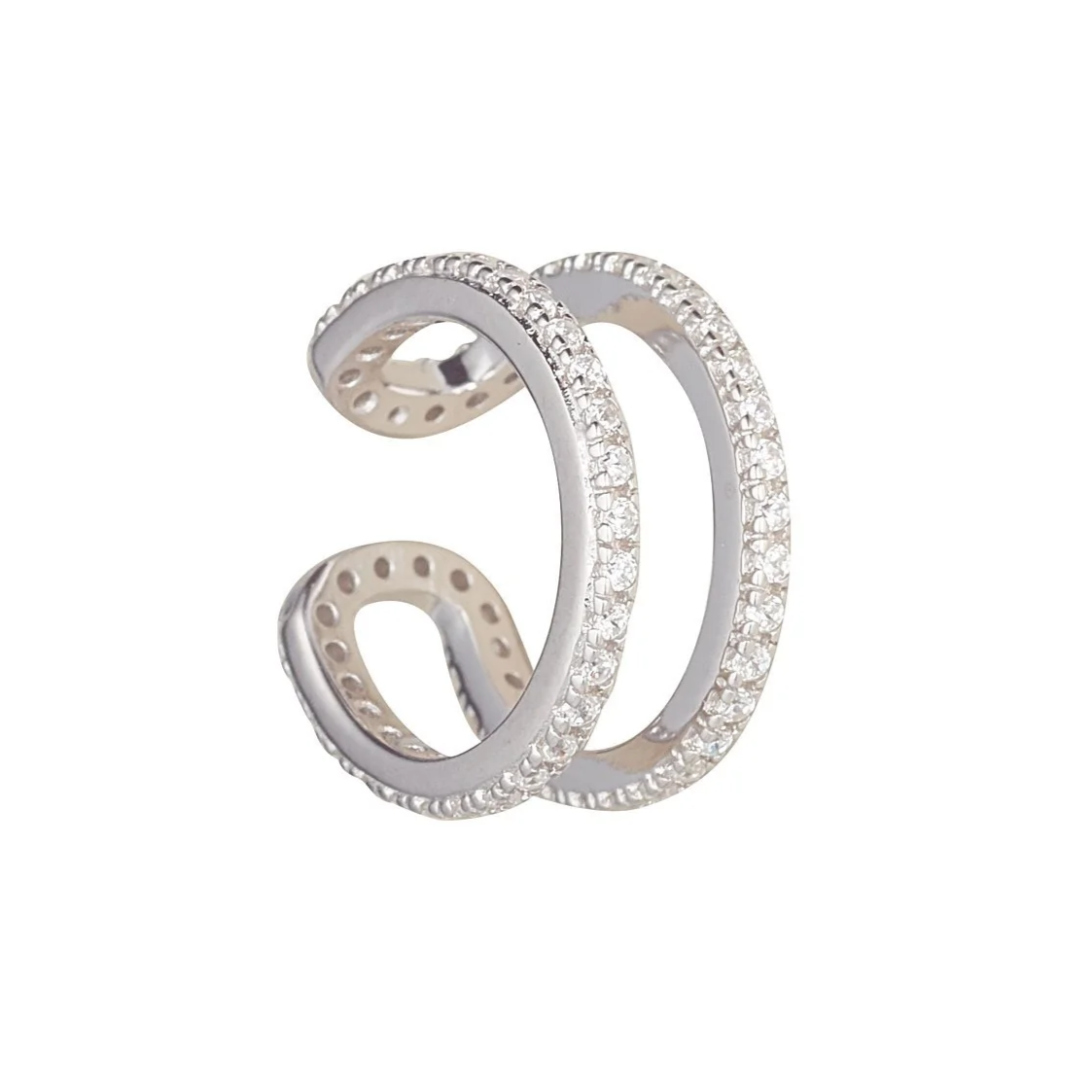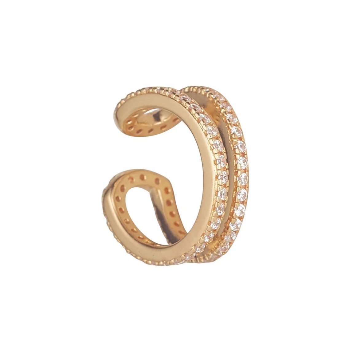 Description: Sterling silver double bar ear cuff set with 1mm cubic zirconia's, coated in a thick layer of 18ct yellow...