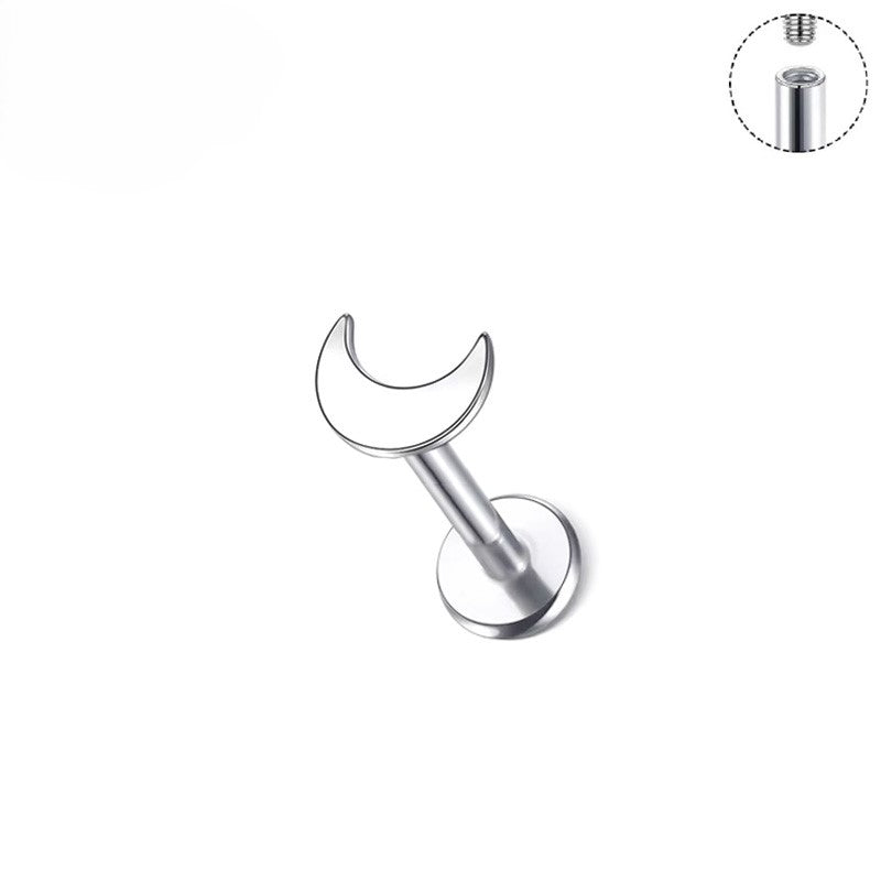 Description: Elevate your ear adornments with this Titanium Flat Back Labret Earring with Moon Design. Its internally-threaded flat-back construction offers a...