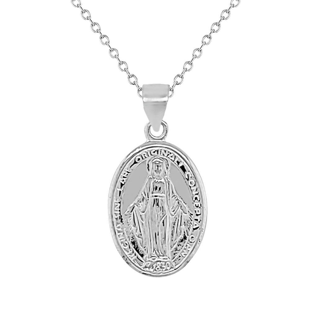 Sterling Silver Miraculous Medal Necklace with Cross