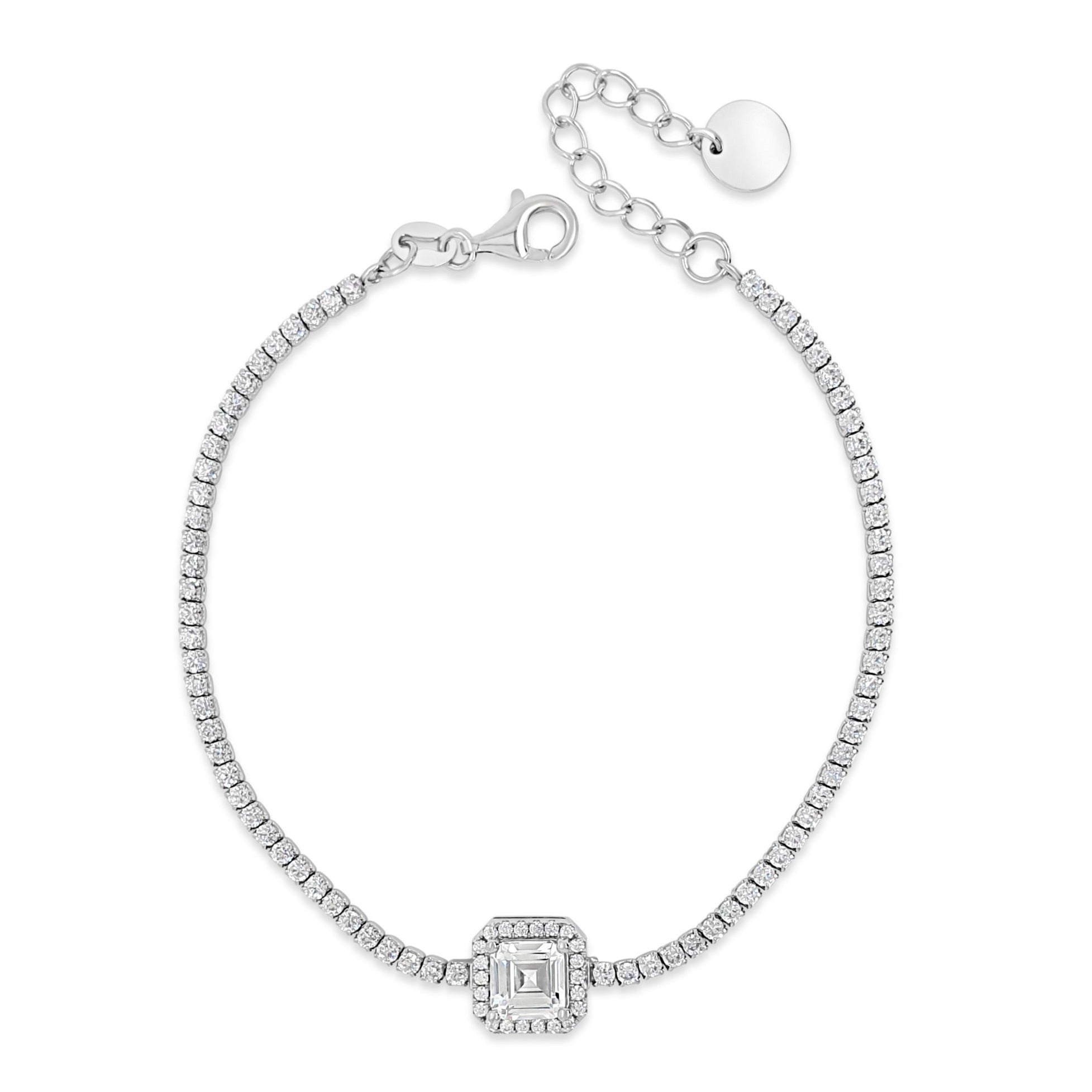 Sterling Silver Tennis Bracelet with Squared Centre Stone