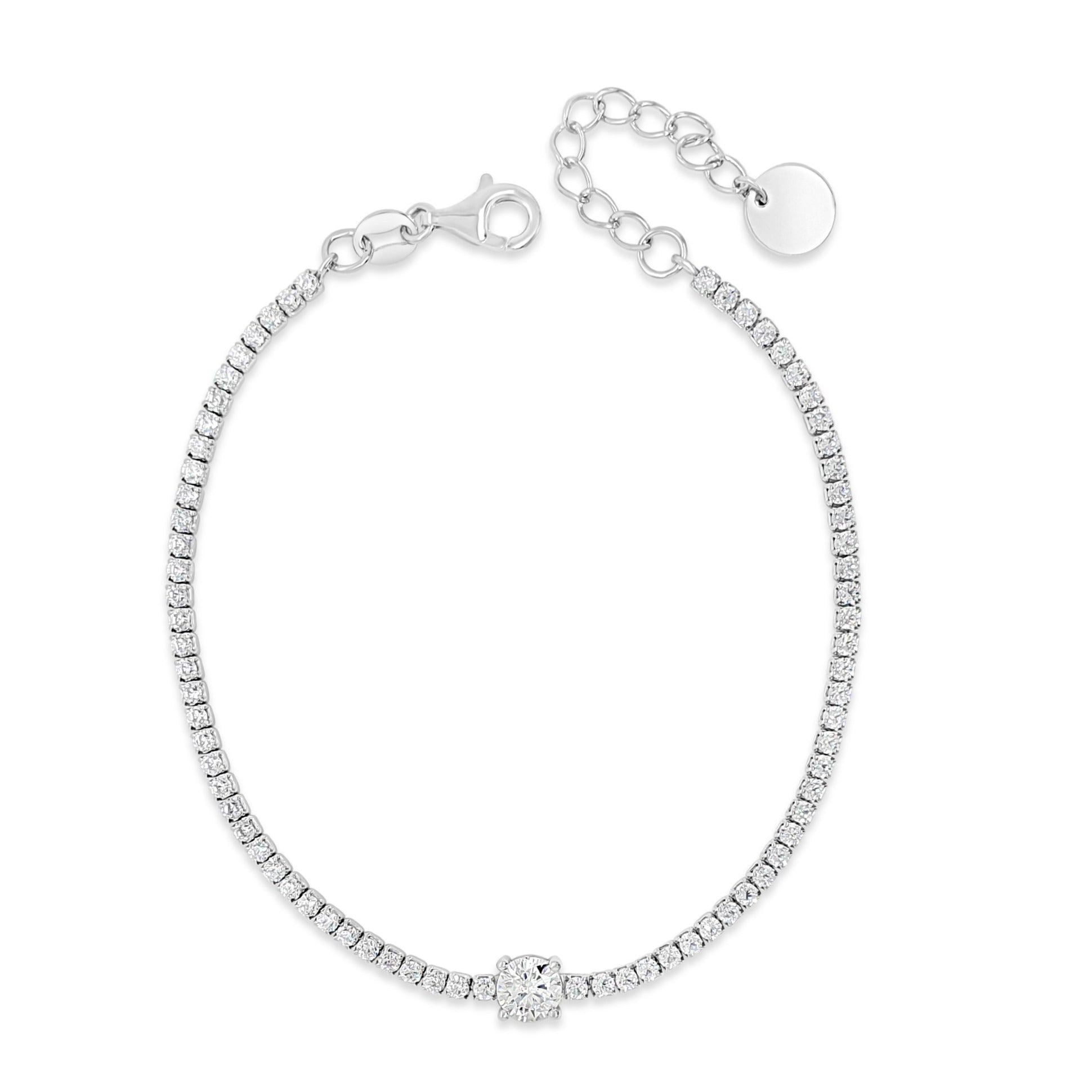 Tennis Style with Round Centre Stone Sterling Silver Bracelet