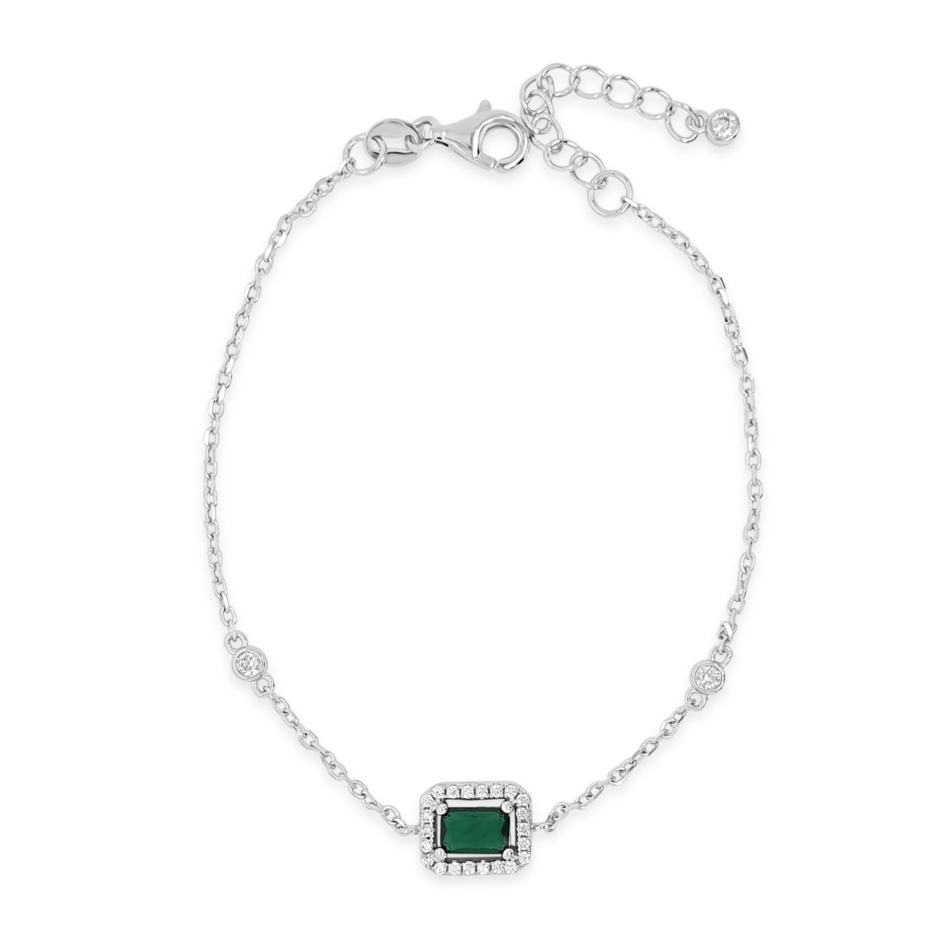 Emerald Princess Cut Sterling Silver Chain Bracelet