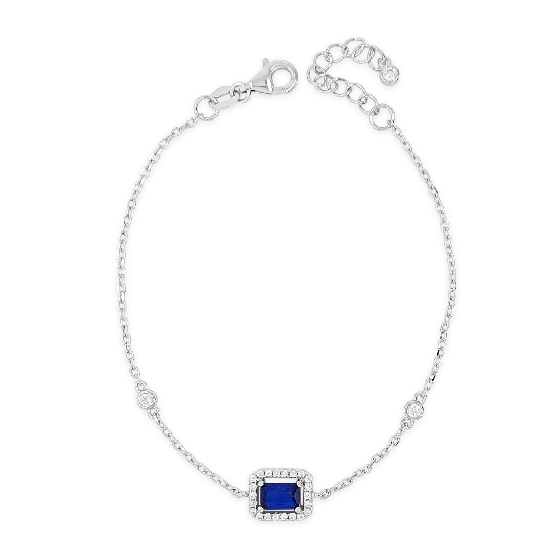 Sapphire Princess Cut Sterling Silver Chain Bracelet