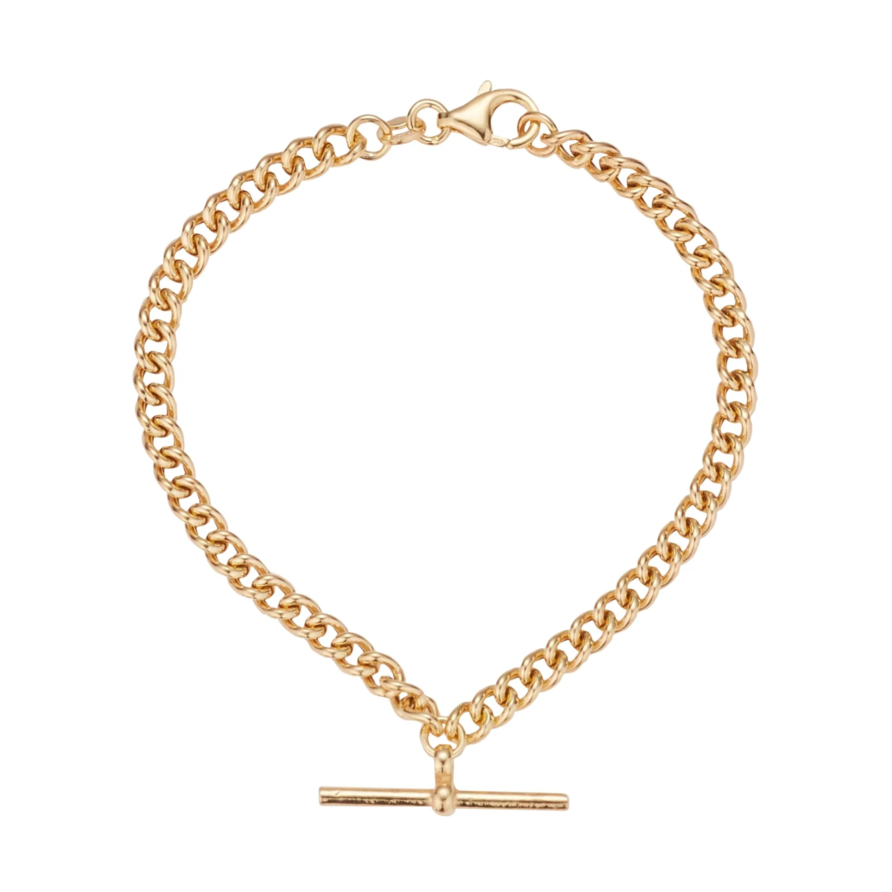 Sterling Silver T-Bar Bracelet 18ct Gold Plated