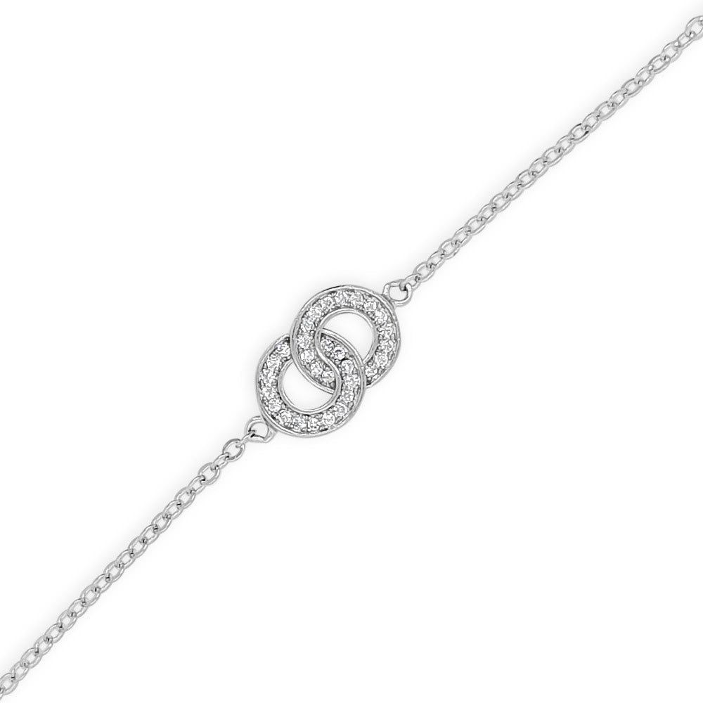 Two Circles Crystal Sterling Silver Chain Bracelet