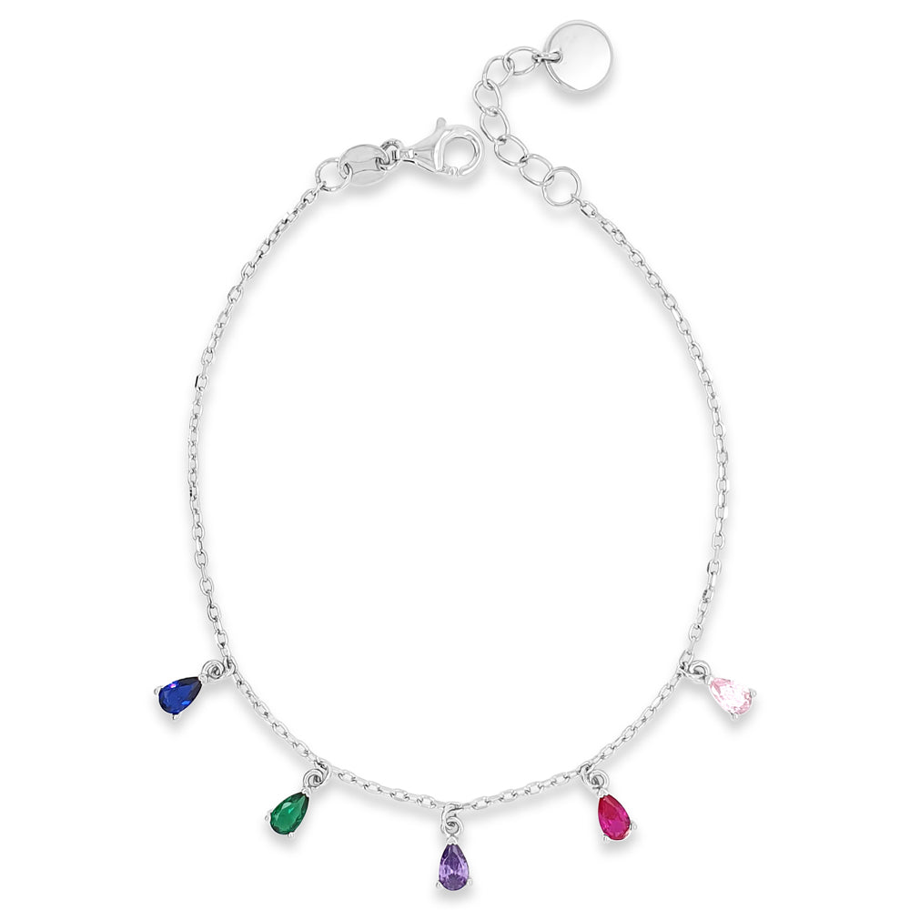 Sterling Silver Charm Bracelet with Rainbow Teardrop Charms