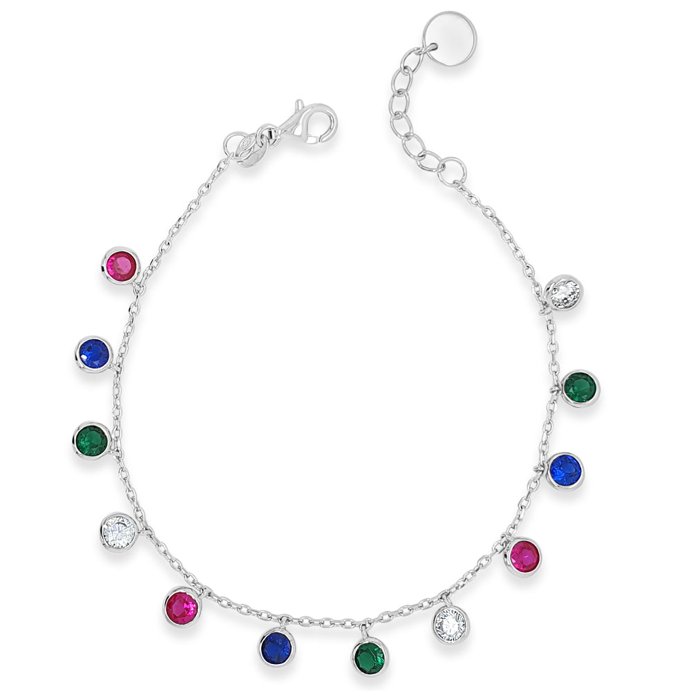 Sterling Silver Chain Bracelet with Multicolour Charms
