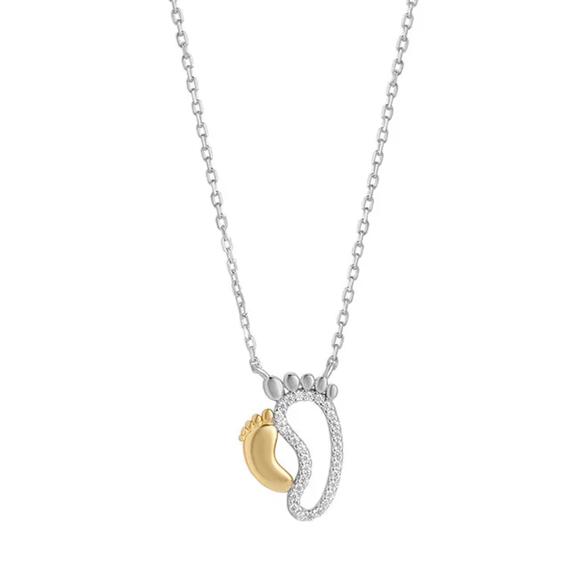 Description: This expertly crafted Two Tone Baby Feet pendant is the perfect way to commemorate the special occasion of becoming...