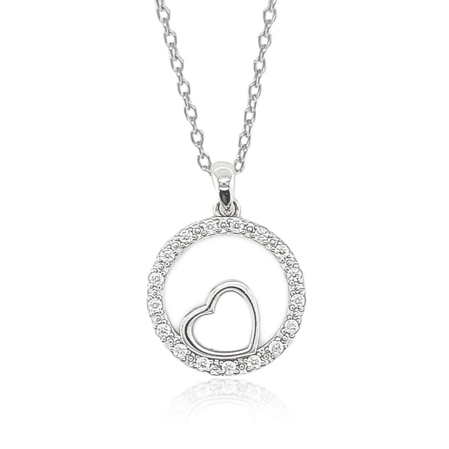 Entwine Hearts Circle Diamante Sterling Silver Pendant
