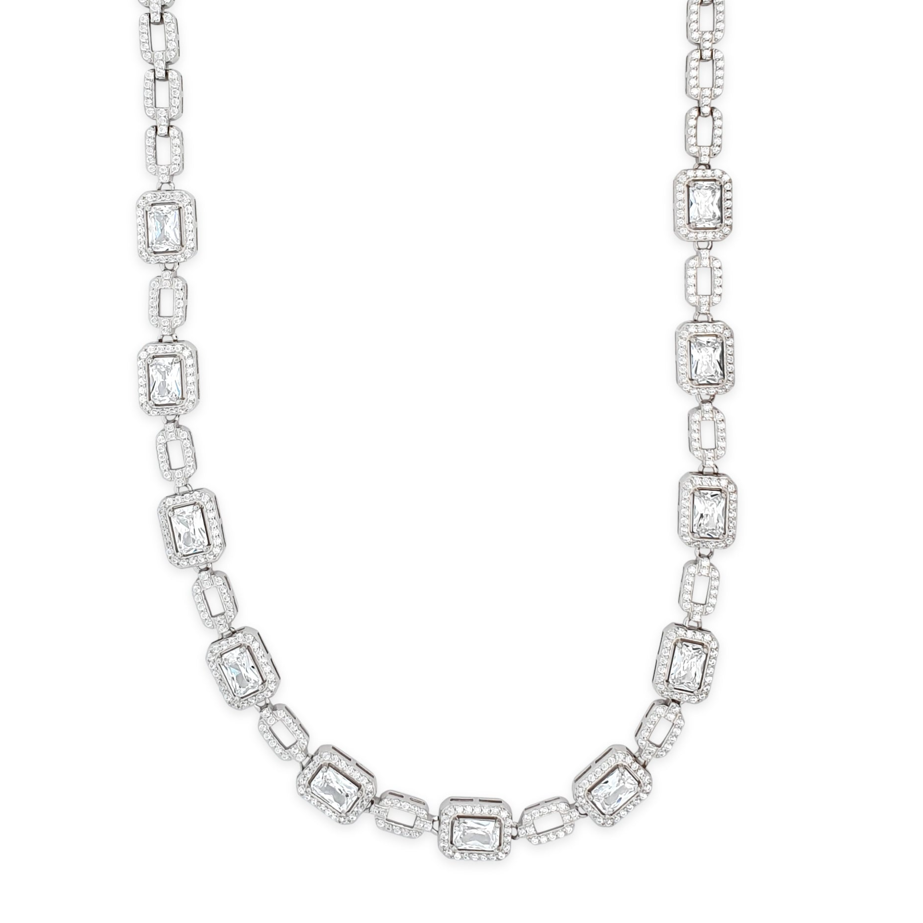 Glamour Collection Emerald Cut Gemstones Sterling Silver Necklace