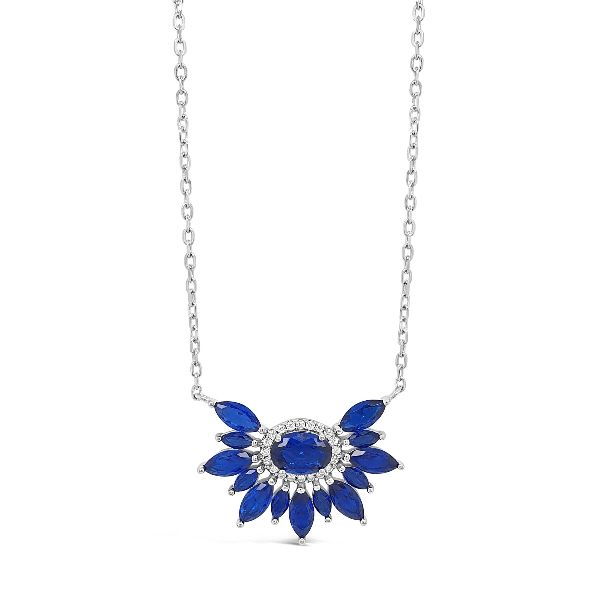 Glamour Collection Marquise Gemstones Sterling Silver Necklace