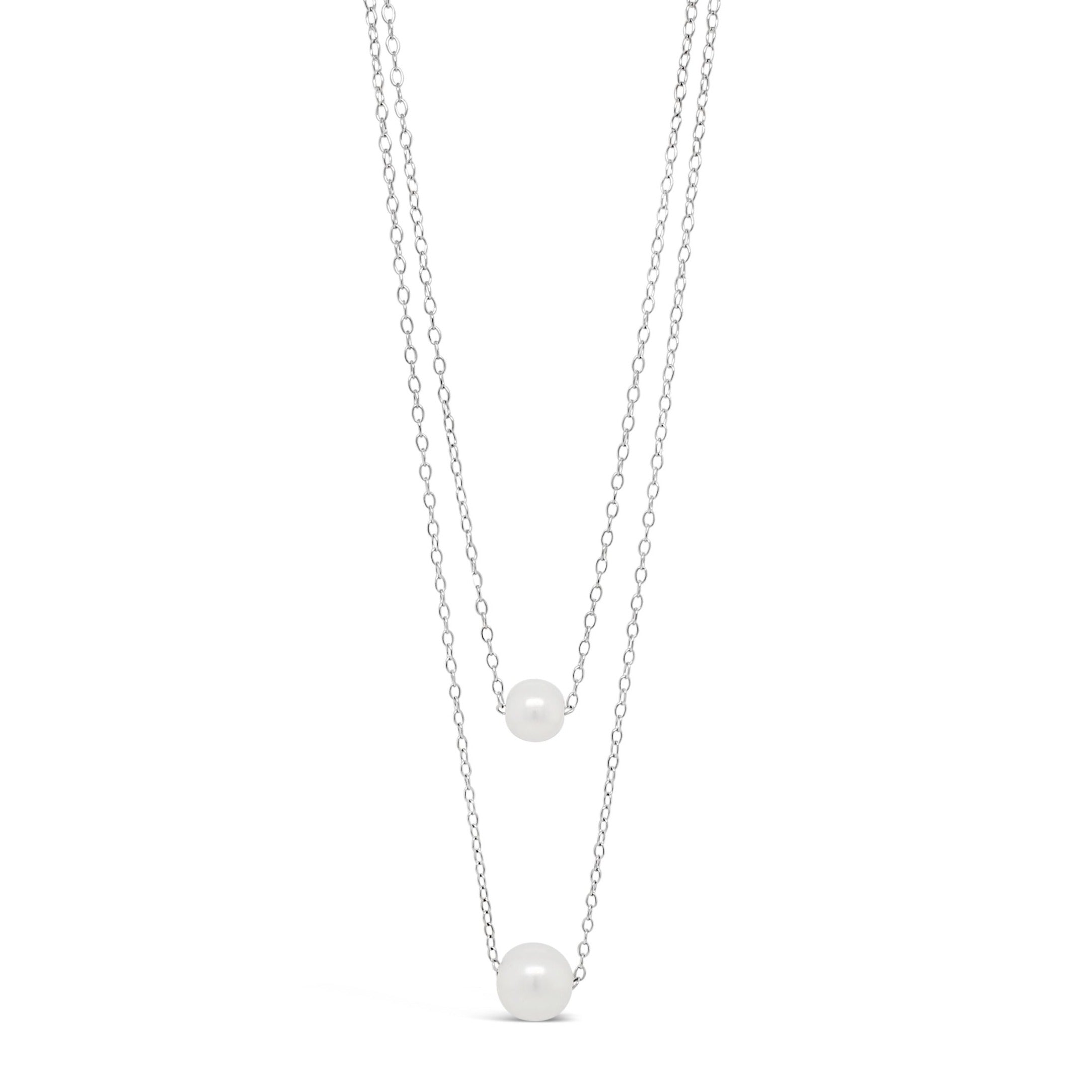 Amina White Pearls Sterling Silver Double Chain Necklace