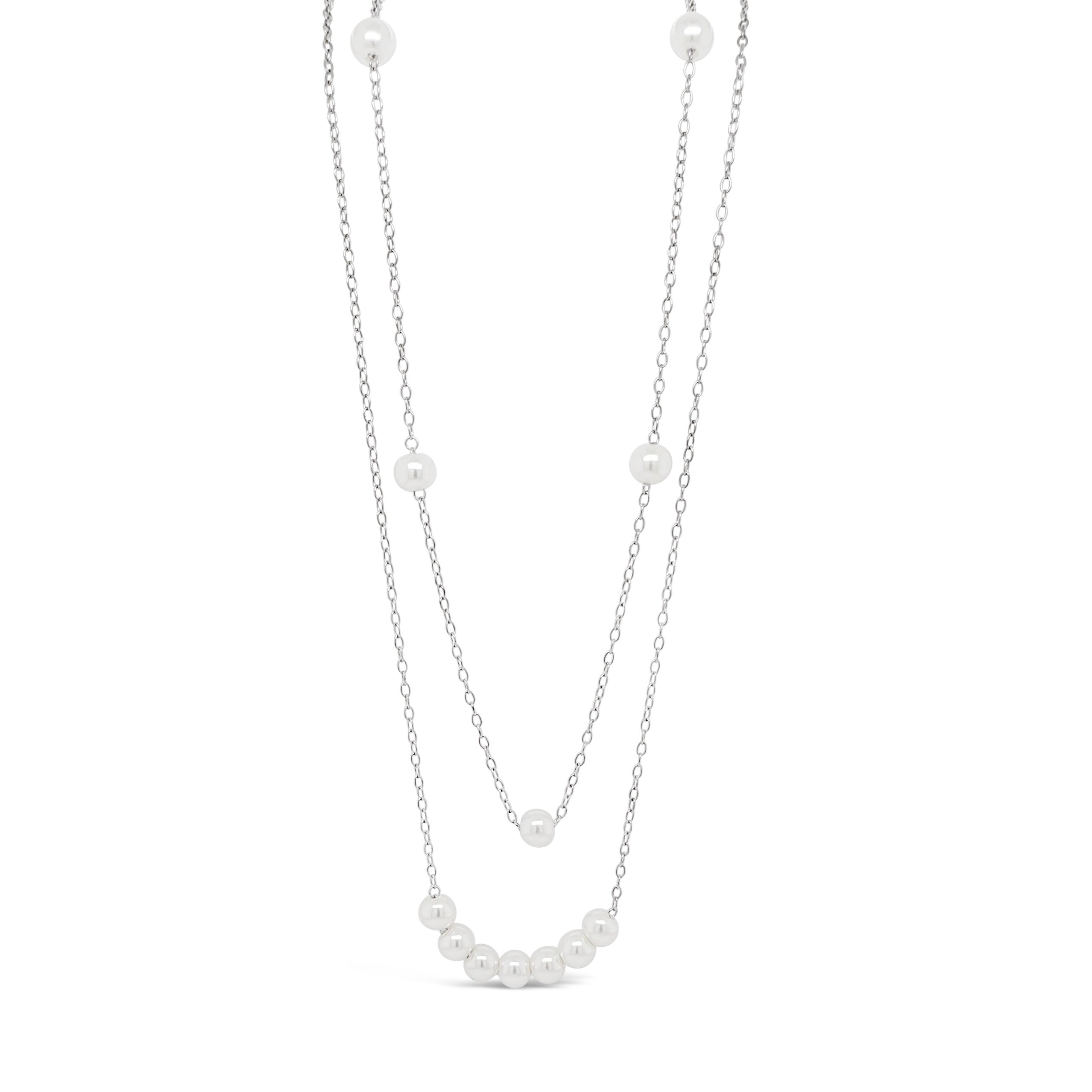 Aria White Pearls Sterling Silver Double Chain Necklace