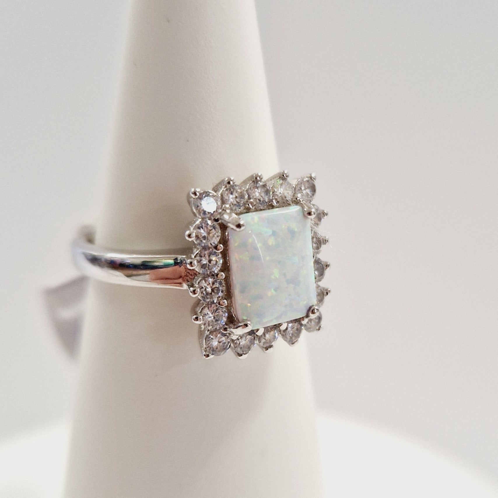 Sterling Silver Rectangular White Opal Cluster Ring
