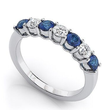 Description: This exquisite Sapphire Eternity Ring showcases a sophisticated arrangement of 4 Sapphires alternating with 3 clear zircons, creating a...