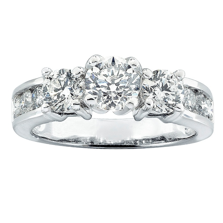 Description: This classic 3 stone ring showcases a trio of brilliant cubic zirconia as the focal point, complemented by three...