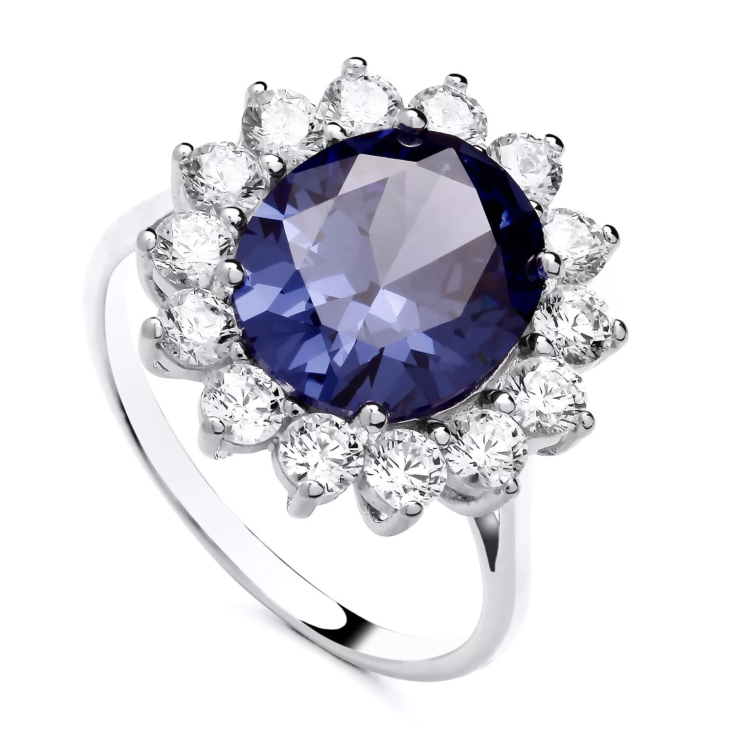 Sterling Silver Aquamarine Princess Diana Cluster Ring