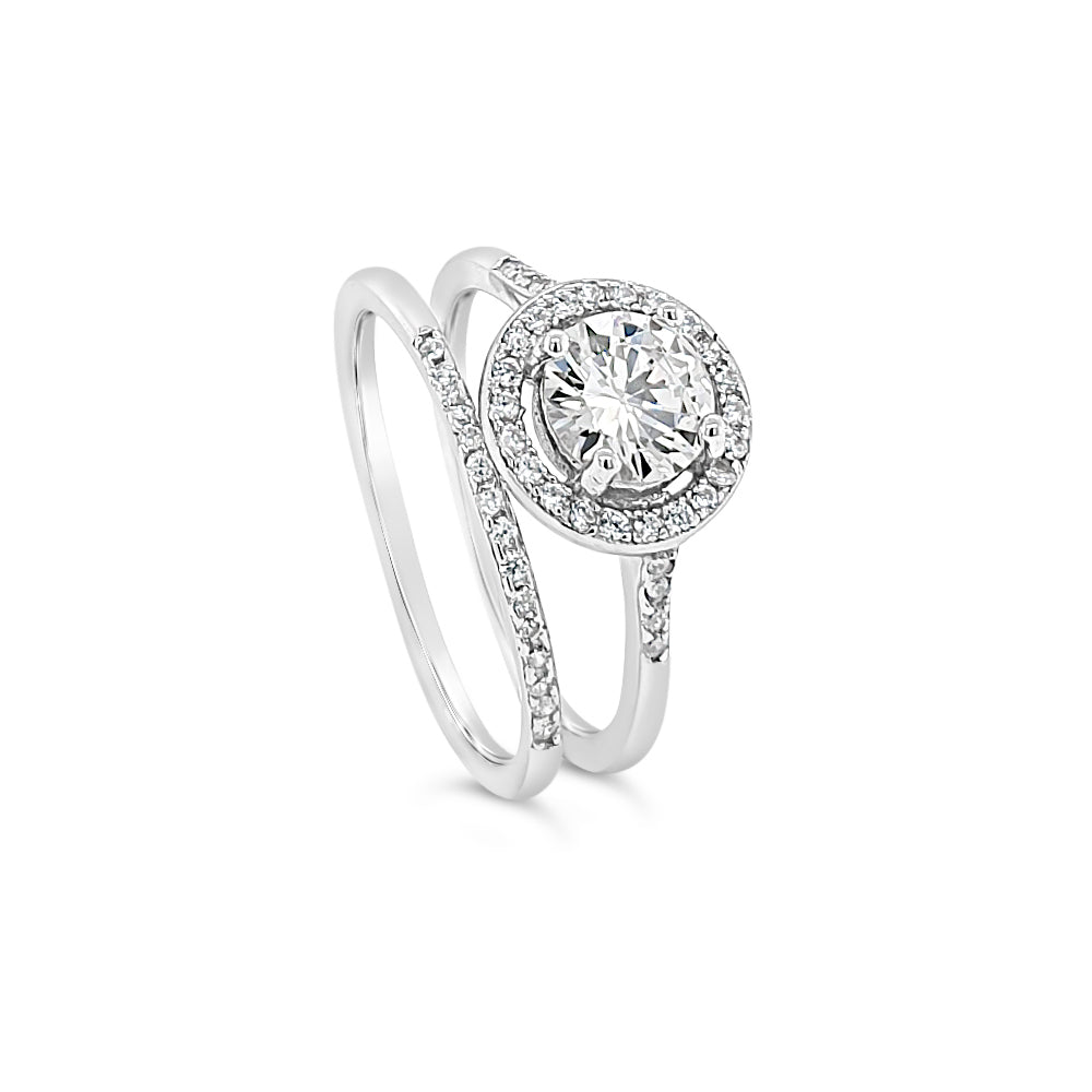 Ladies Sterling Silver Cubic Zirconia Halo Ring with Eternity Band