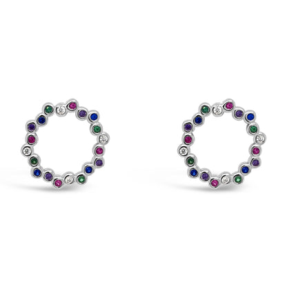 Gloria Multi Gem Sterling Silver Circle Stud Earrings