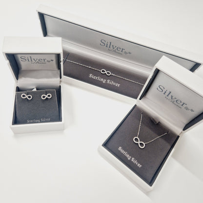Infinity Love Diamante Sterling Silver Stud Earrings