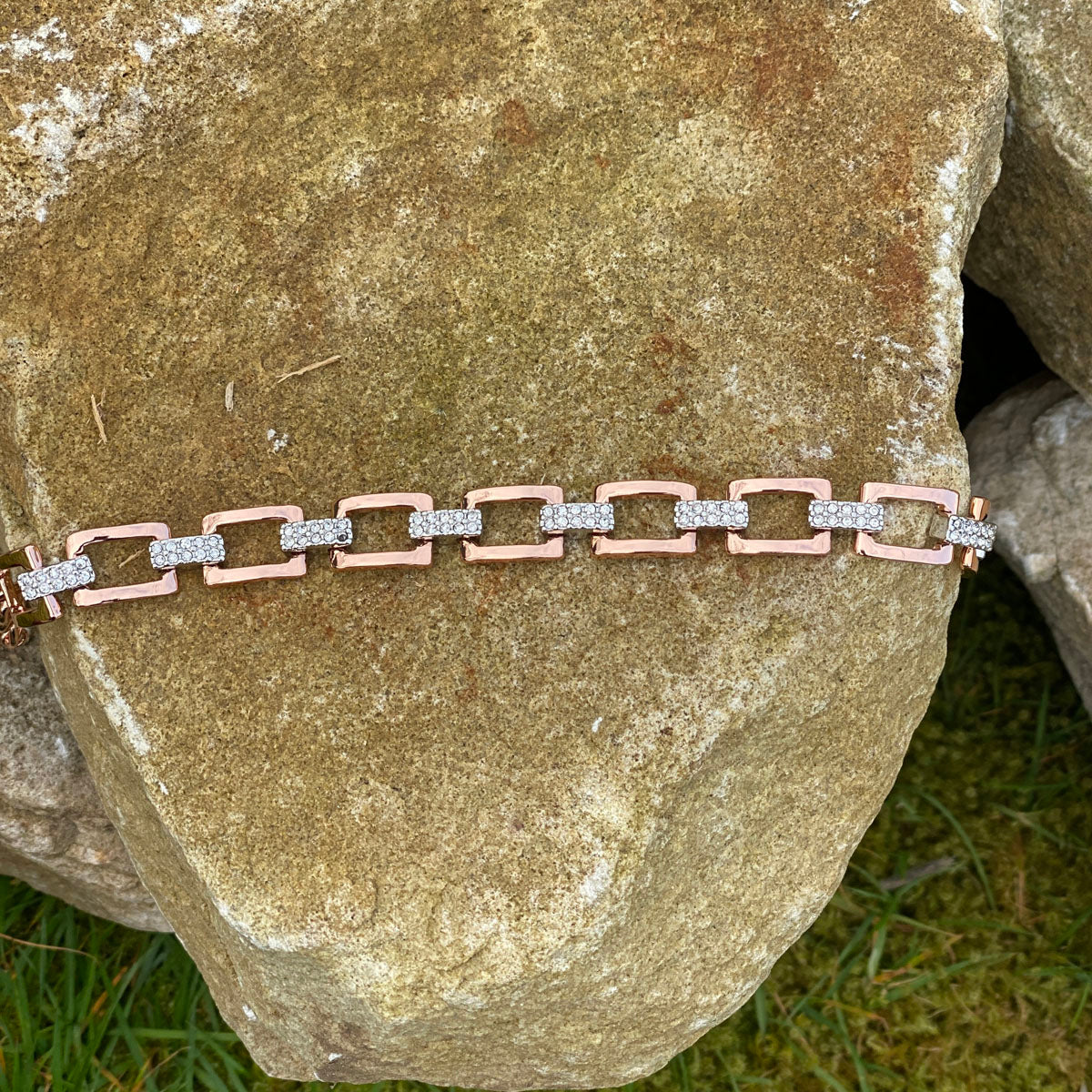 This bracelet makes a perfect set with Kendra Rose Gold Rectangular Diamante Necklace