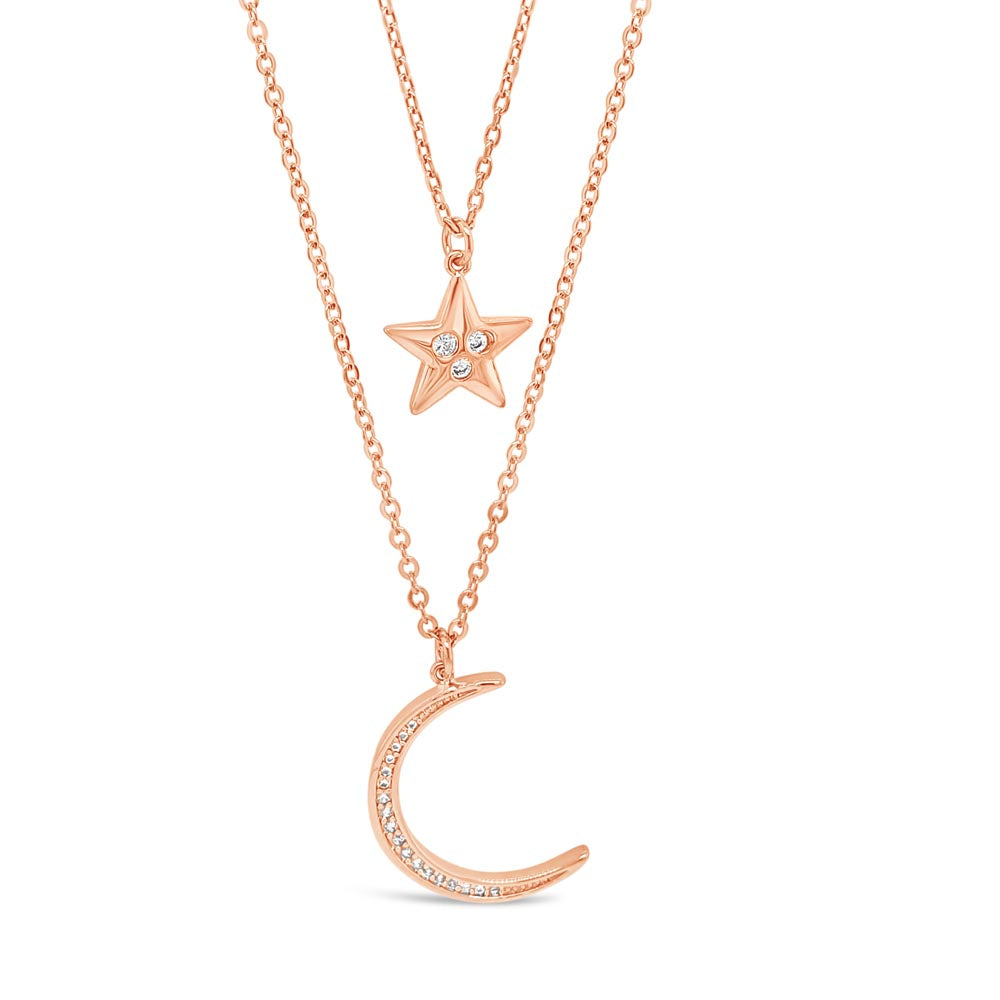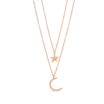 Midnight Moon & Star Rose Gold Diamante Double Necklace