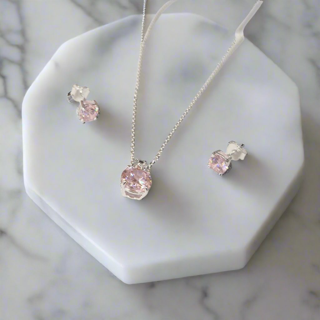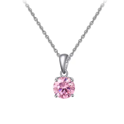 - 18'' Sterling Silver Chain + 7 mm Pink CZ pendant.
