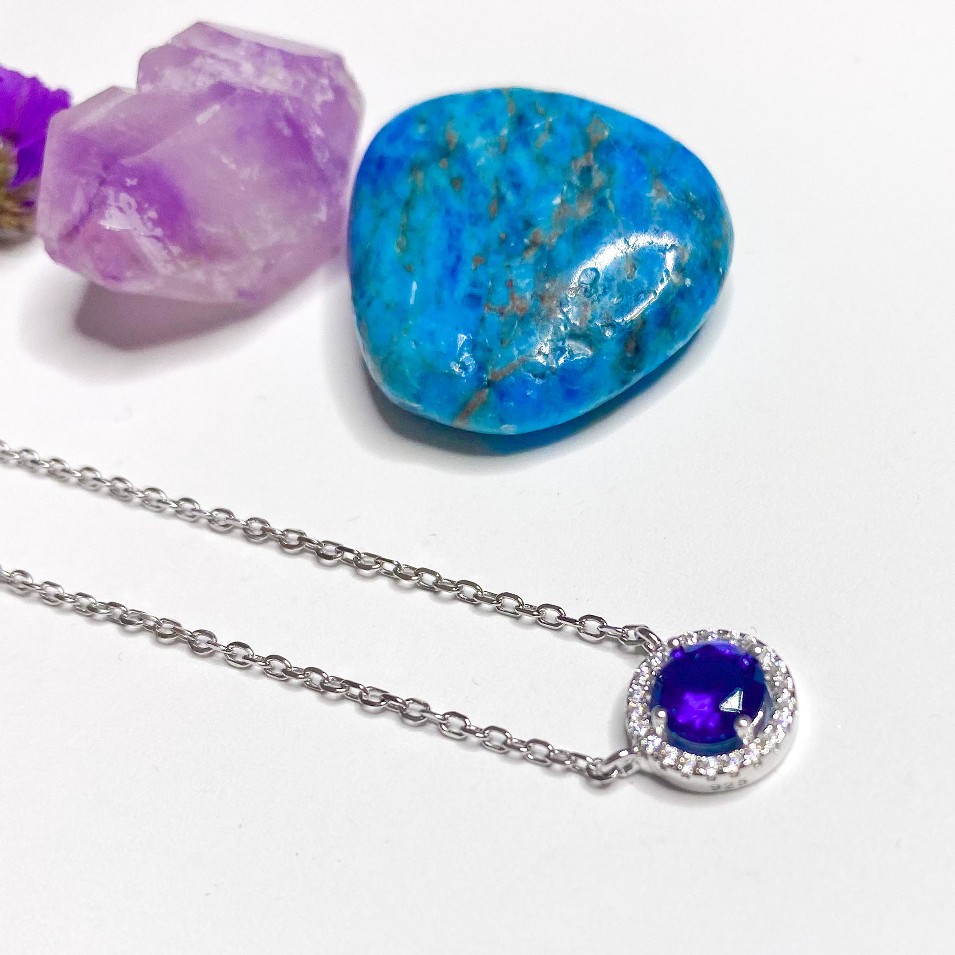 This sparkling round necklace matches perfectly Royal Sapphire earrings