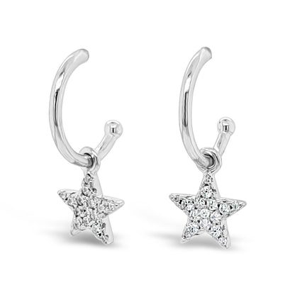 Shiny Star Charm Sterling Silver Hoop Stud Earrings