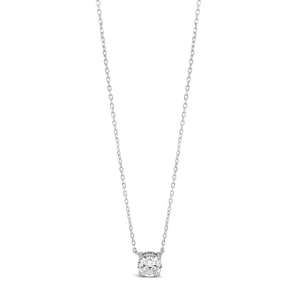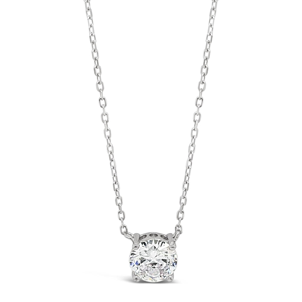 Rhodium plated sterling silver pendant and chain. This brilliant cut single solitaire pendant is a firm favourite of ours. Set using 4 claws, the cubic zirconia stone is 6mm in size. Classic and elegant, this pendant works day and evening. The chain length is 16" plus a 2" extension chain which allows the wearer versatility of length.