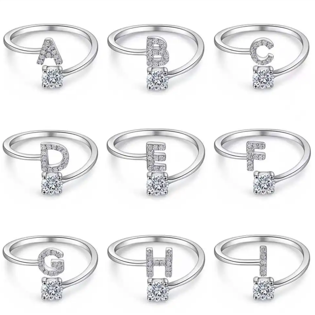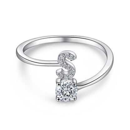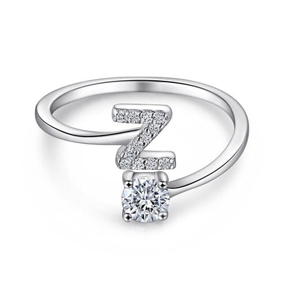 Sterling Silver Alphabet Initital Adjustable Ring