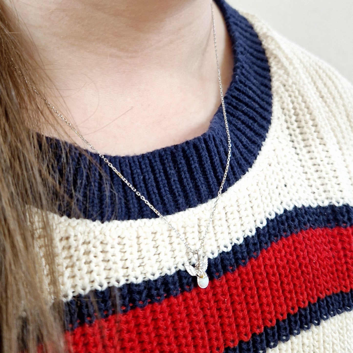 Sterling Silver Little Guardian Angel Pendant with Opal